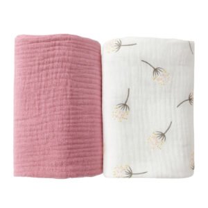 Pieluchy muślinowe 60×60, komplet 2 sztuki- brudny róż, biały dmuchawiec