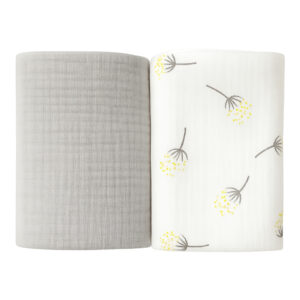 Pieluchy muślinowe 60×60, komplet 2 sztuki- szary, biały dmuchawiec