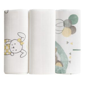 Pieluszki muślinowe, ulewajki, chusteczki, 30x30cm, 3 szt.- zielony dmuchawiec, szary, biały dmuchawiec