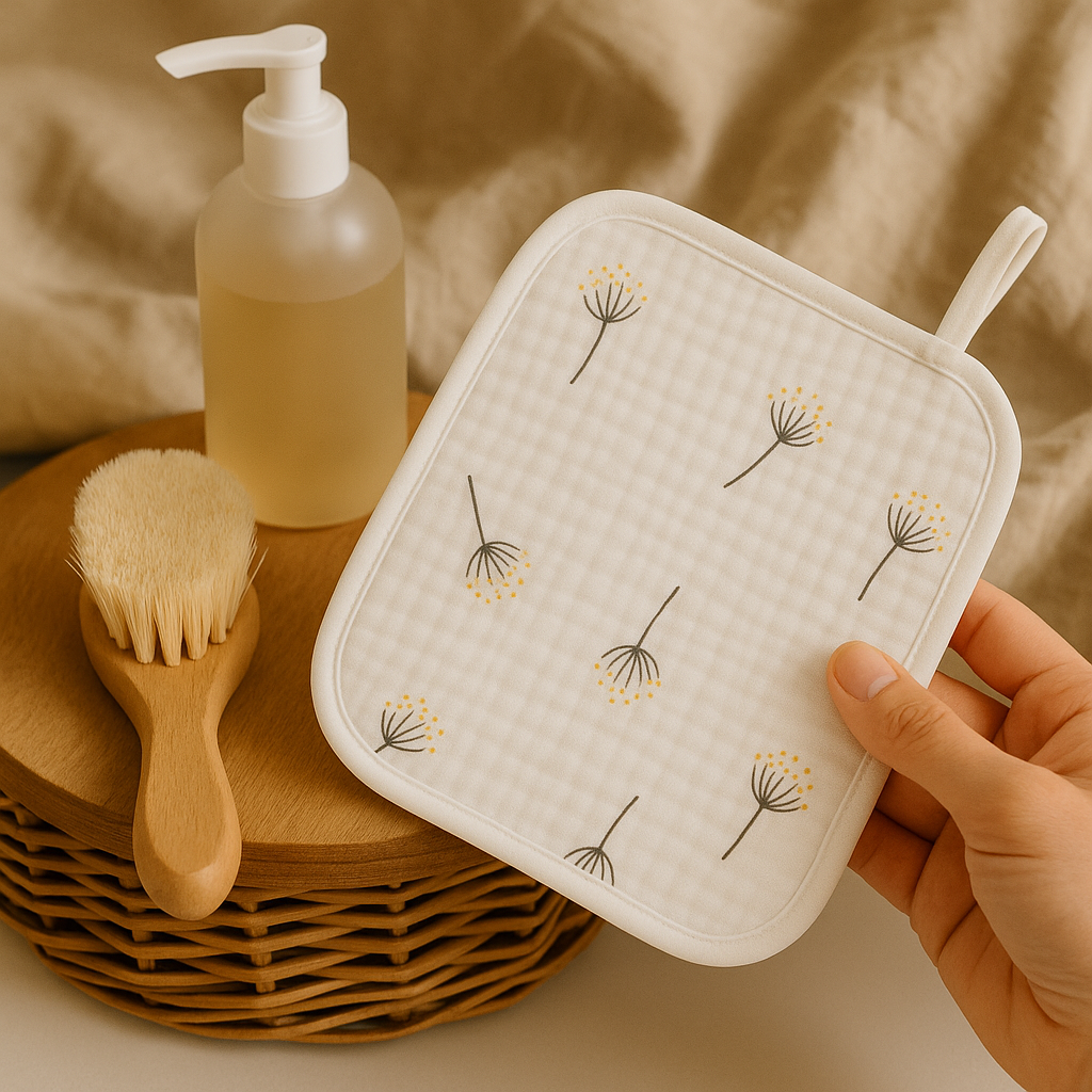 Wnętrze (spód): miękka i chłonna frotta – idealna do pielęgnacji wrażliwej skóry