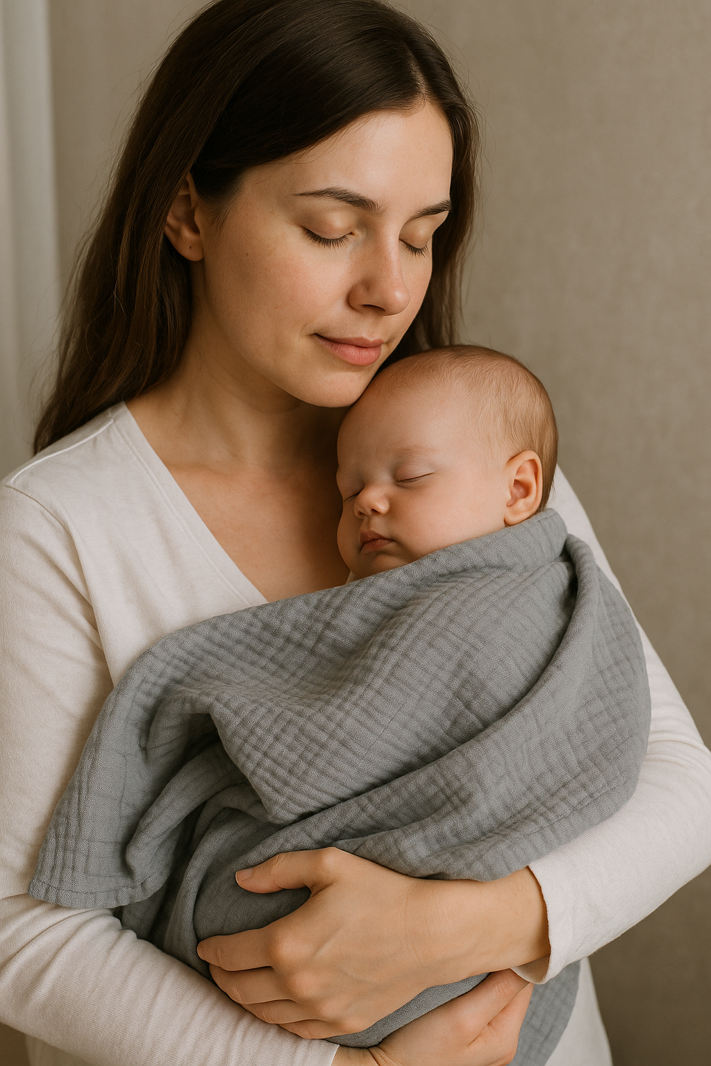 Materiał: 100% naturalna bawełna muślinowa – bezpieczna dla wrażliwej skóry niemowląt