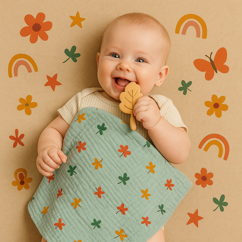 Materiał: 100% naturalna bawełna muślinowa – bezpieczna dla wrażliwej skóry niemowląt