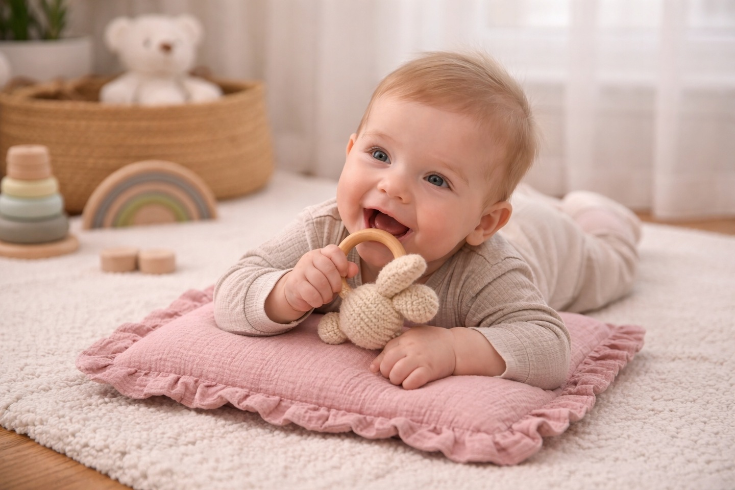Stylowy design: Urocza falbanka i pastelowe kolory sprawiają, że poduszka stanowi piękny element dekoracyjny w pokoju dziecka